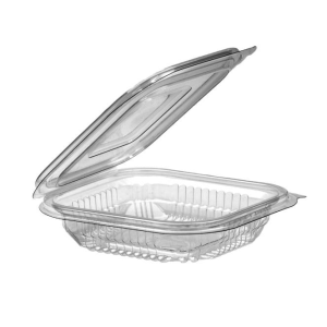 - Hinged Lid: The lid is usually made from PET (Polyethylene Terephthalate), a clear plastic that provides a secure seal while allowing for the contents to be visible. While durable and lightweight, PET is recyclable, though it is not compostable.